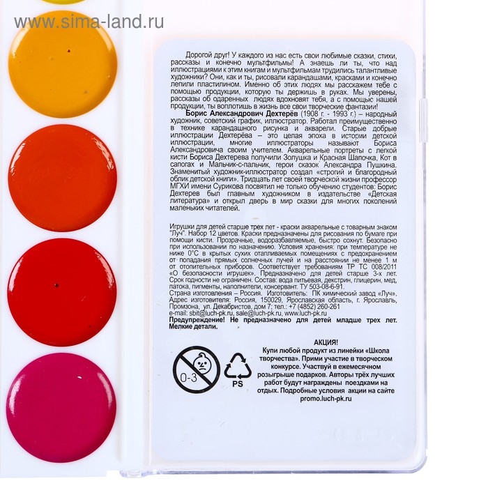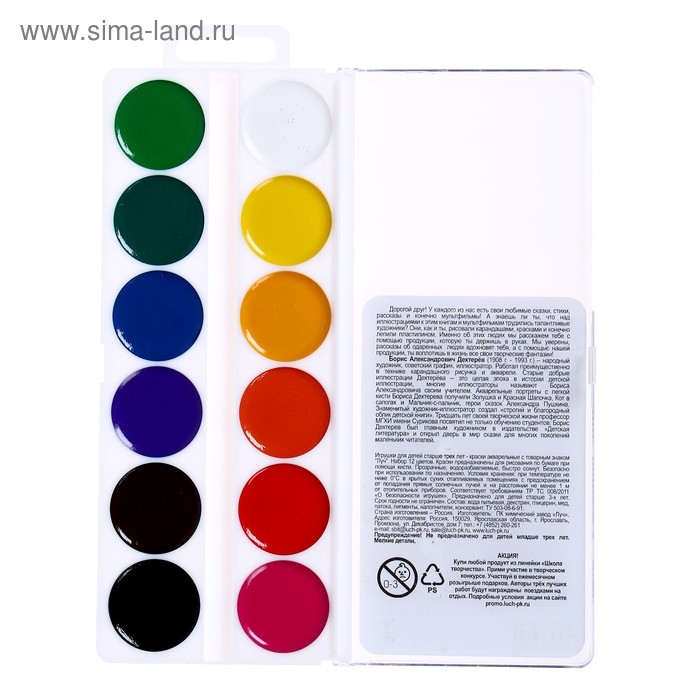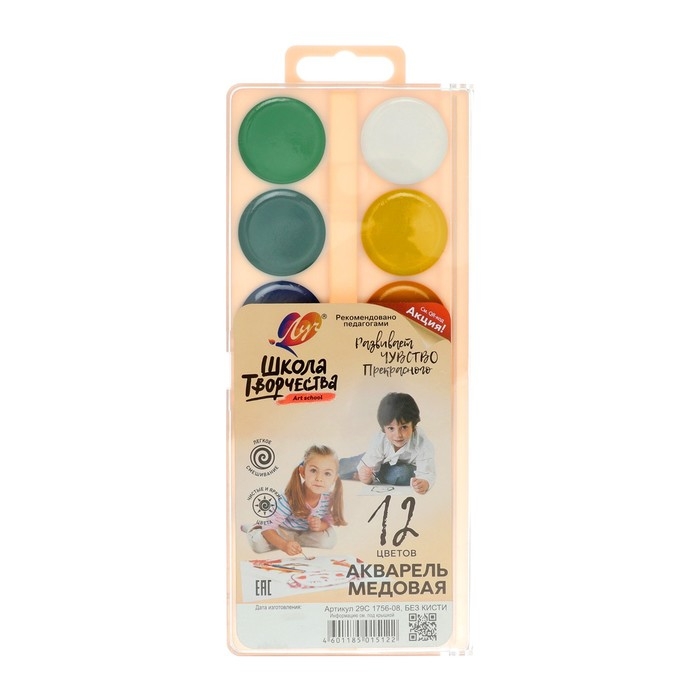 Акварель Луч "Школа творчества", 12 цветов, без кисти