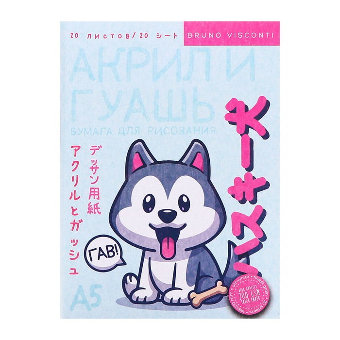 Бумага для гуаши, акрила, акварели А5, 20 листов в папке, блок 200 г/м2, МИКС