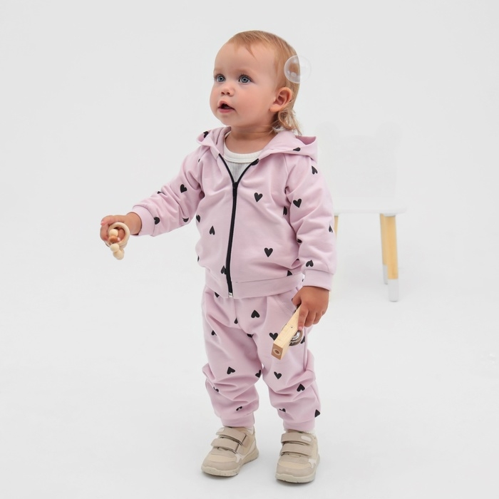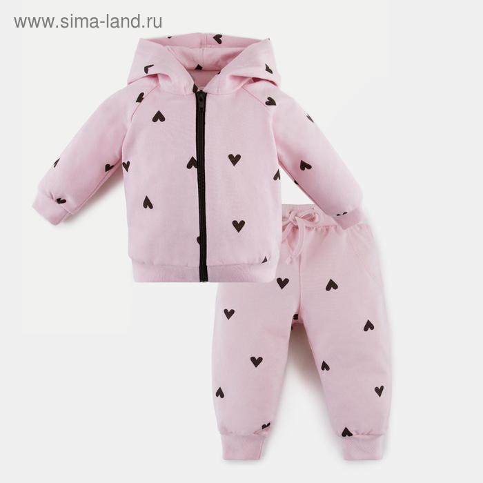 Комплект: толстовка и брюки Крошка Я "Сердечки", розовый, рост 86-92 см