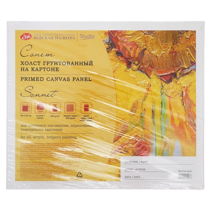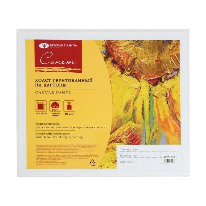 Холст на картоне 30 х 35 см, хлопок 100%, толщина 3 мм, акриловый грунт, мелкозернистый, ЗХК "Сонет"