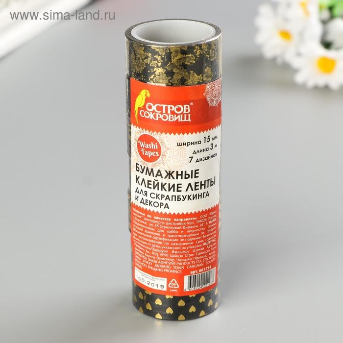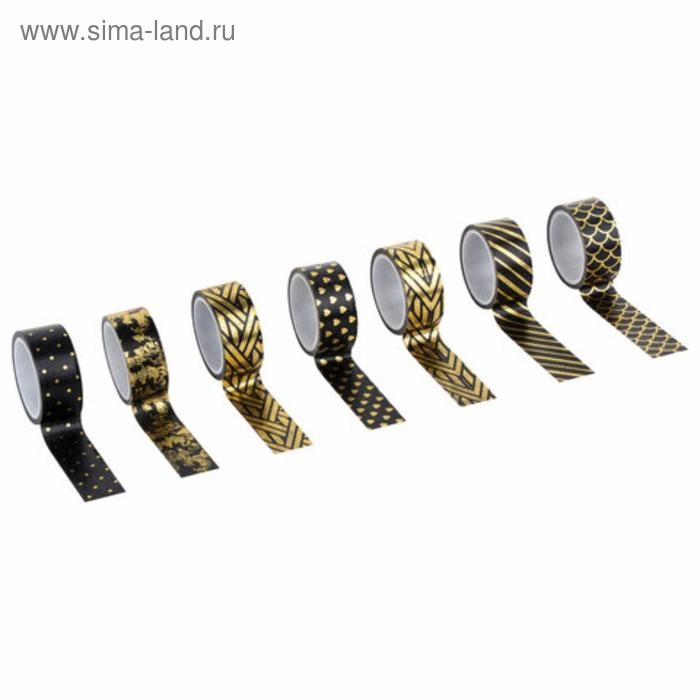 Клейкие WASHI-ленты с фольгой "ЧЕРНОЕ ЗОЛОТО", 15 мм х 3 м (набор 7 шт) рисовая бумага