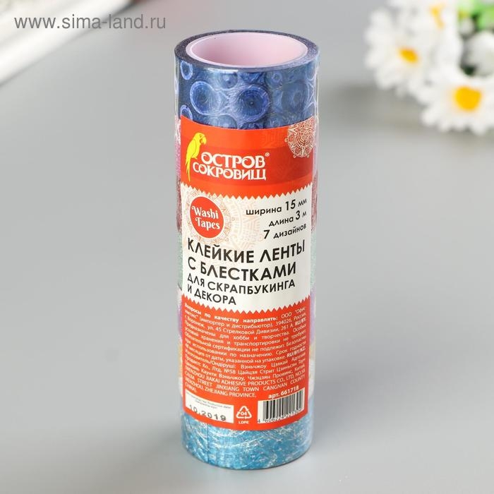 Клейкие ленты полимерные для декора с блестками "УЗОРЫ", 15 мм х 3 м (набор 7 шт)