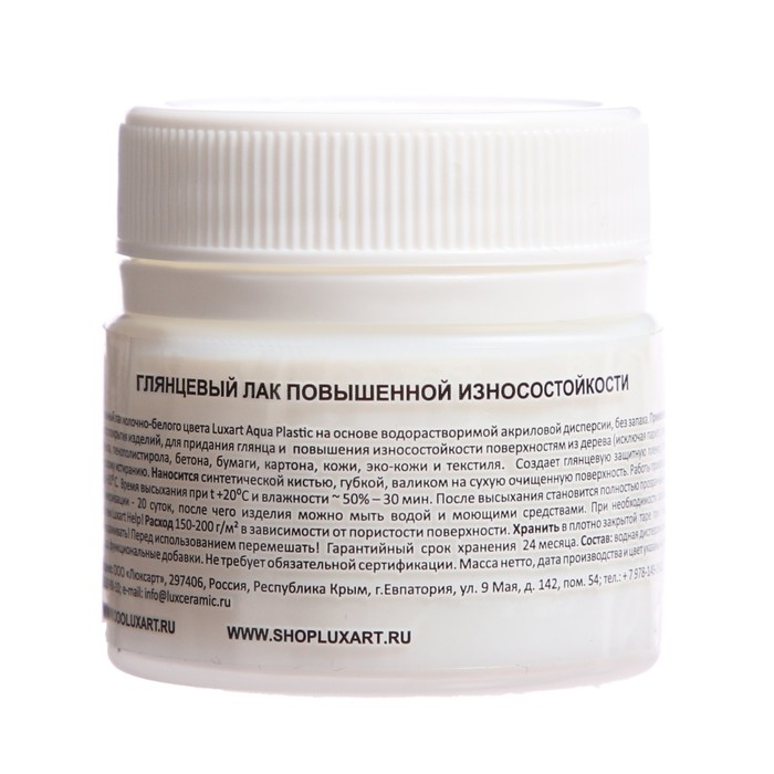 Универсальный лак Luxart Aqua Plastic на основе водорастворимой акриловой дисперсии, без запаха.