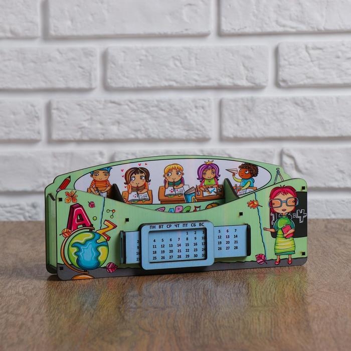 Календарь-карандашница "Учителю" с совой, мдф, дуб, 22х7х14 см