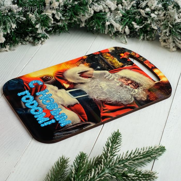 Доска разделочная "Новогодняя. С Новым годом! Дед Мороз слушает", цветная, 27х18 см