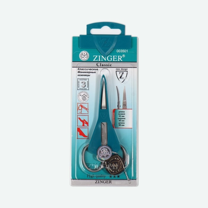 Ножницы маникюрные ZINGER, загнутые, широкие, 9 см, на блистере, цвет серебристый, B-116-D-(FD)-SH