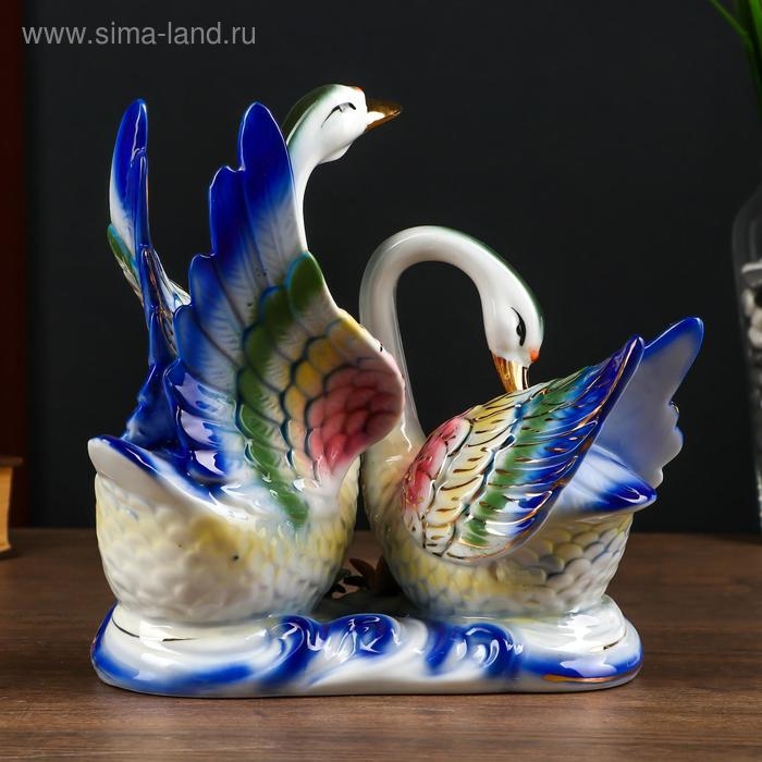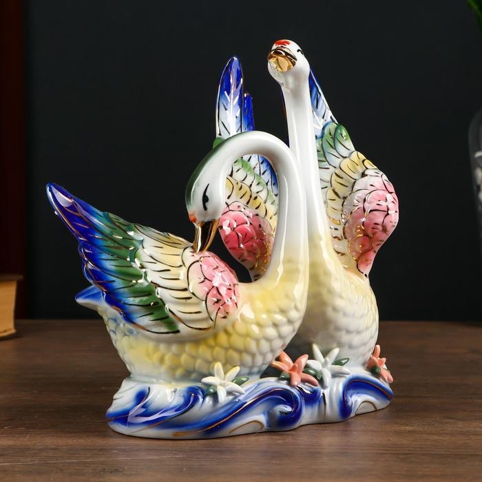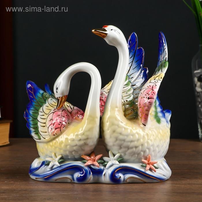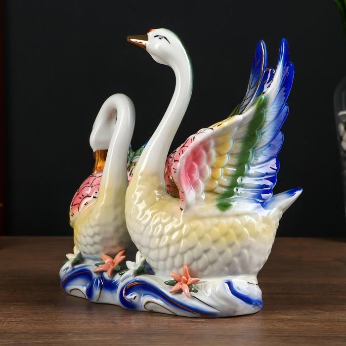 Сувенир керамика "Лебеди в заводи с цветами" цветные 21х20,7х10,3 см