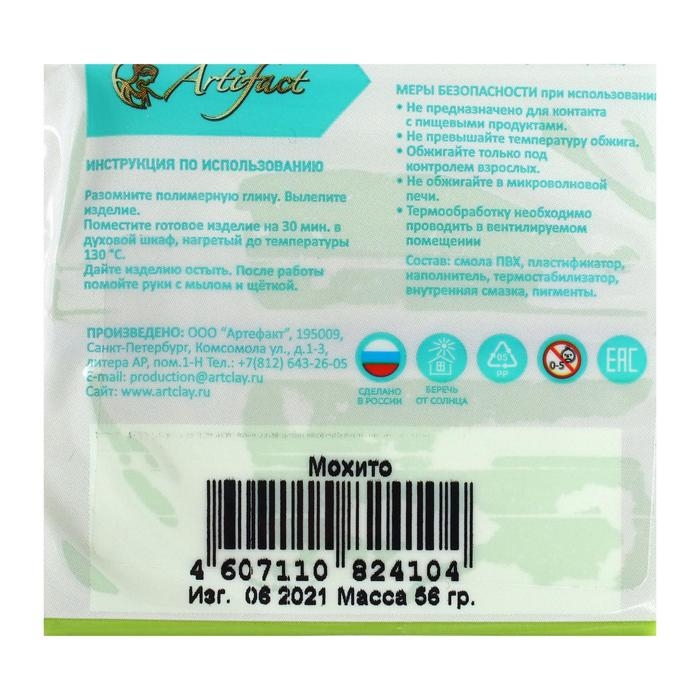 Artifact — первый в России производитель полимерной глины, который выпускает качественные и безопасные материалы для лепки и моделирования.Полимерная глина Artifact — это оптимальный вариант для того, чтобы познакомиться с материалом и сделать первый шедевр. Цвет не меняется после запекания. Легко смешивается с другими для получения ярких оттенков.По внешнему виду и своей податливости полимерная глина похожа на пластилин, а после запекания превращается в твёрдую пластмассу. С её помощью можно изготовить мельчайшие детали. Работать с полимерной глиной легко: изделие нужно только слепить и запечь.Обожжённые поделки хранятся длительное время. Готовые изделия можно мыть и протирать влажной салфеткой. Состав полимерной глины подобран таким образом, чтобы при хранении она не твердела, при лепке не крошилась и не пачкалась, а после запекания не ломалась. Материал безопасен, с ним может работать даже ребёнок.Подходит для профессионального использования. Рекомендовано для детей от 5 лет.