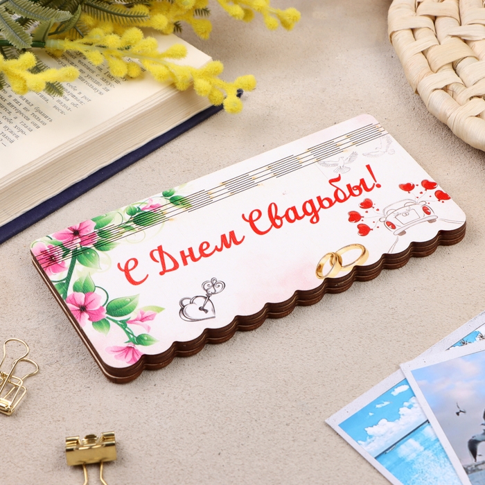 Купюрница "С Днем Свадьбы", плоская, печать, 18,5х9,5х0,8 см