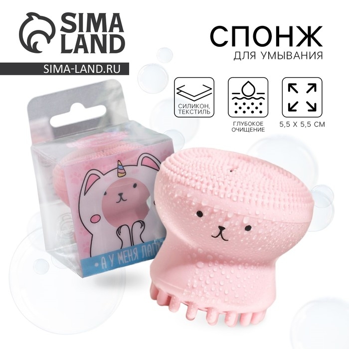 Массажер для лица, спонж для умывания «Котик» 5,5 х 5,5 см