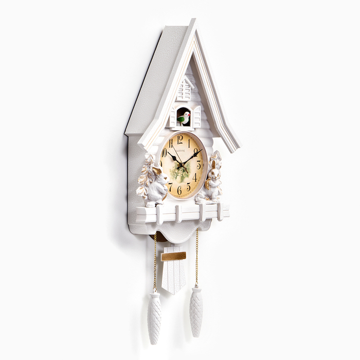 Часы настенные интерьерные большие с кукушкой "Зайки", бесшумные, 30 х 26 см, циферблат d-10 см 78