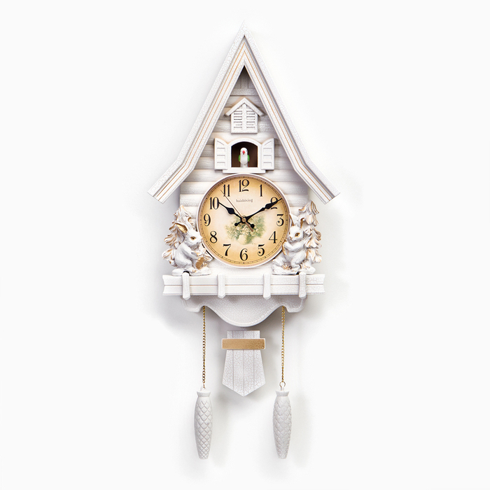 Часы настенные интерьерные большие с кукушкой "Зайчики", бесшумные, 62 х 32 см