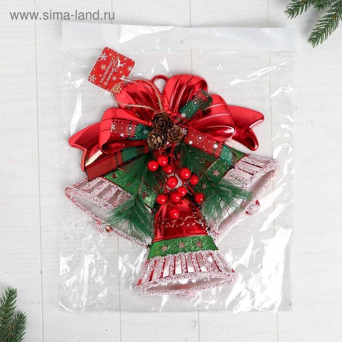 Украшение новогоднее "Колокольчик бант и веточки" 28х28 см, красный