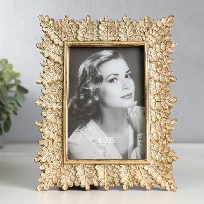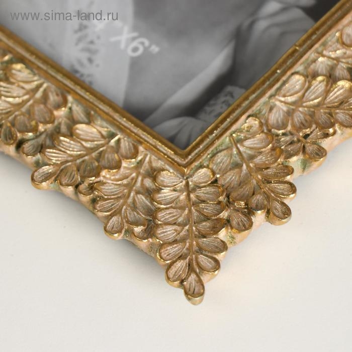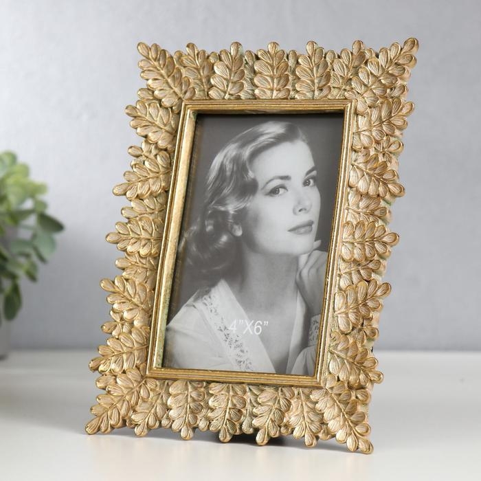 Фоторамка полистоун 10х15 см "Веточки с листьями" светлое золото 21,5х17 см