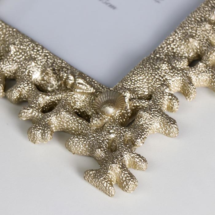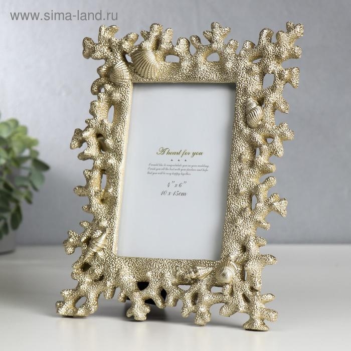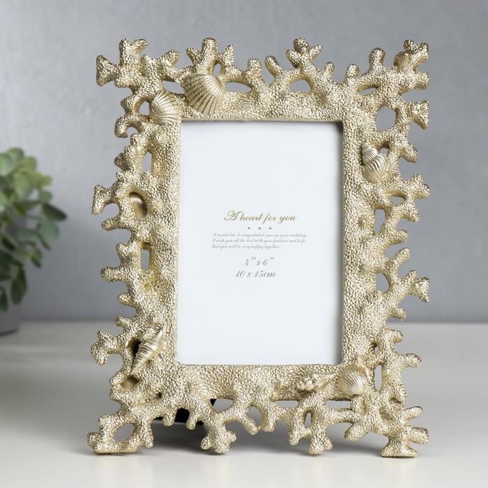 Фоторамка полистоун 10х15 см "Кораллы и ракушки" светлое золото 23,5х19 см