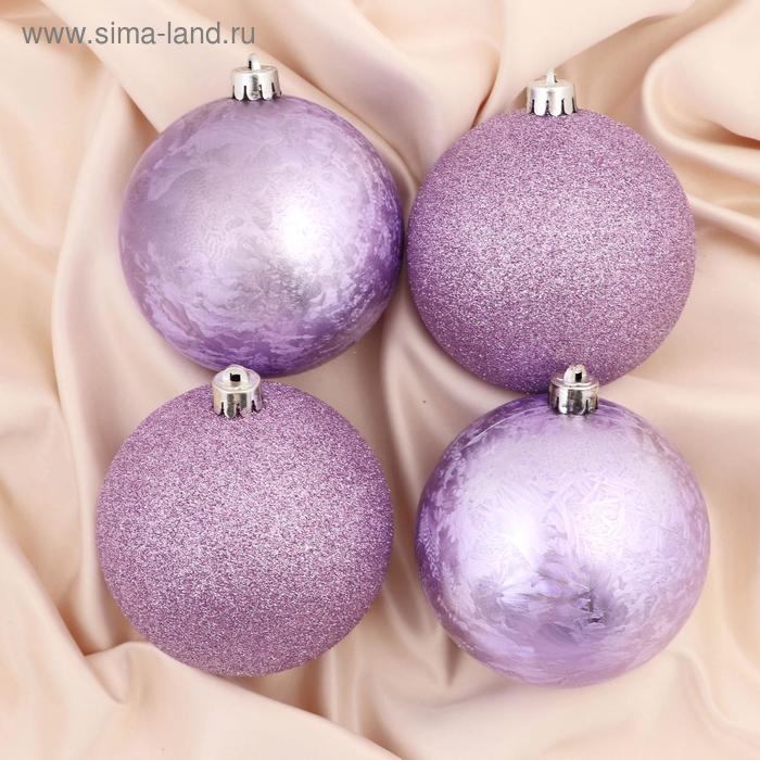Ёлочные игрушки, шары новогодние , пластик, набор d-10 см, 4 шт "Туманный блеск" сиреневый