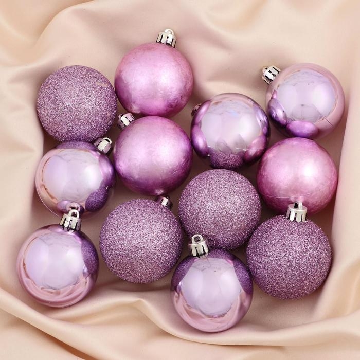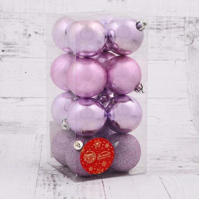 Ёлочные игрушки, шары новогодние , пластик, набор d-5 см, 16 шт "Морозный туман" сиреневый