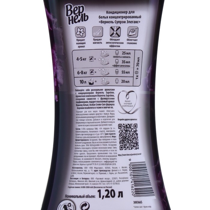 Кондиционер для белья Вернель Supreme Elegance, 1200 мл