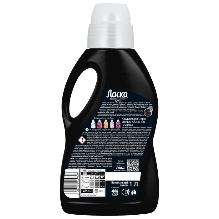 Жидкий порошок Ласка Восстановление BLACK для тёмного эффективно и бережно отстирывает загрязнения на одежде, восстанавливая яркость чёрного и тёмных цветов и сохраняя прочность волокон ткани. В отличие от обычного порошка, Ласка содержит цветозащитные ингредиенты, которые поддерживают стойкость цвета одежды. Активные компоненты способствуют уменьшению количества катышков на ткани. Формула содержит более 90% ингредиентов натурального происхождения.