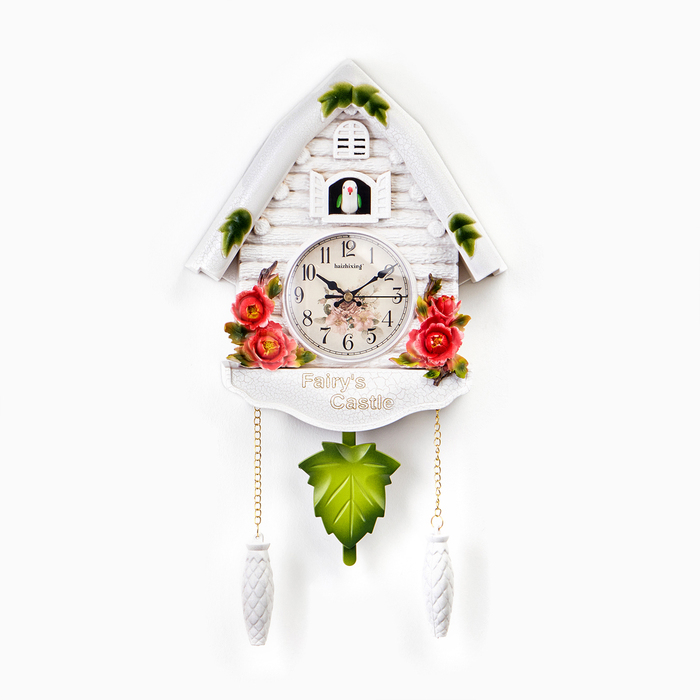 Часы настенные интерьерные большие с кукушкой "Замок фей", бесшумные, 44 х 26 см