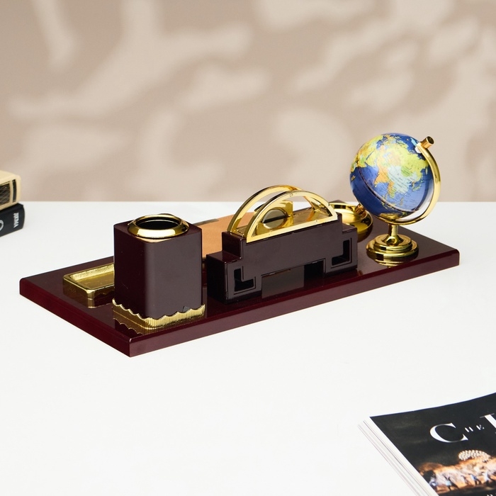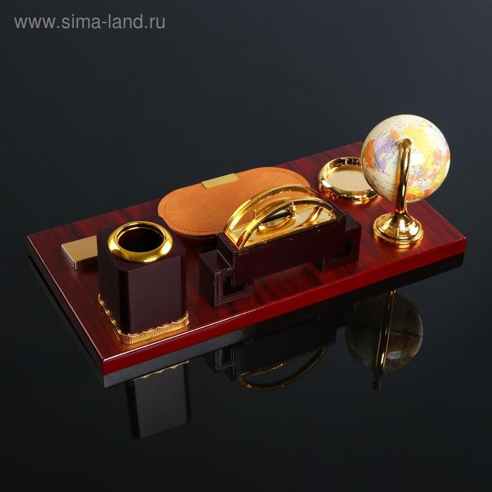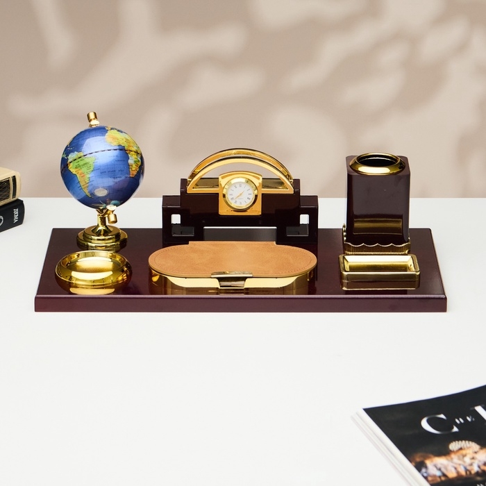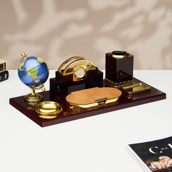 Набор настольный 6в1 (блок д/бумаг, подаст. д/печати, карандашница, часы, визитница,глобус)