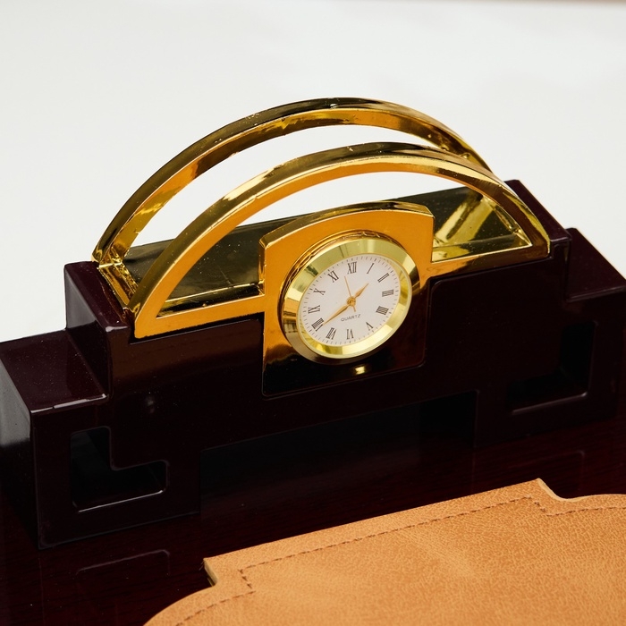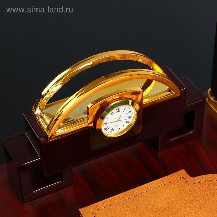 Набор настольный 6в1 с визитницей и часами, красное дерево