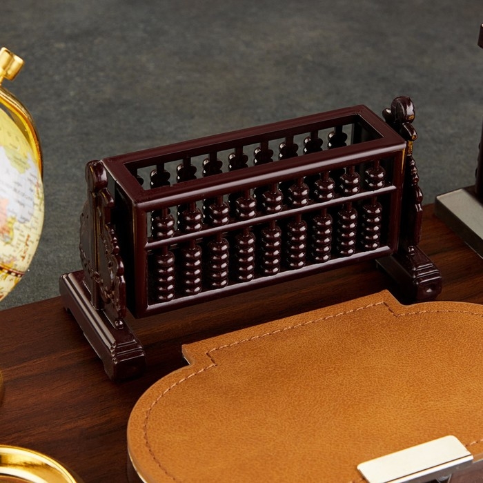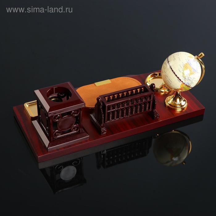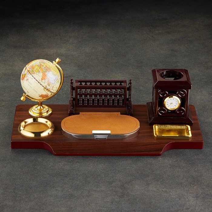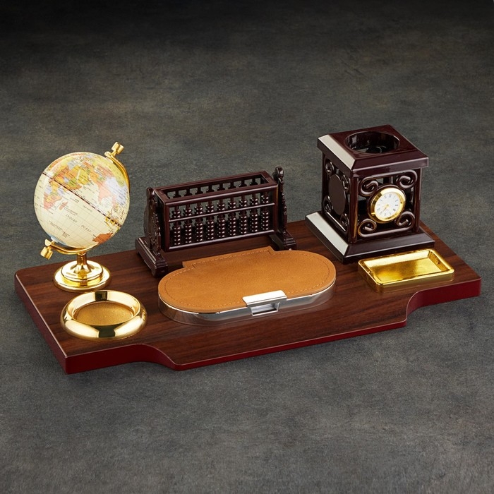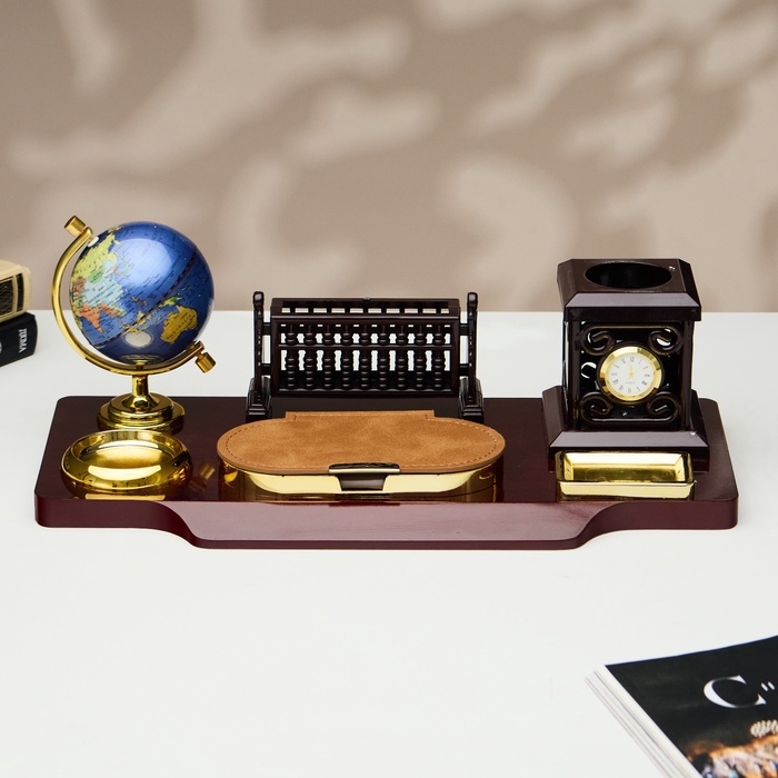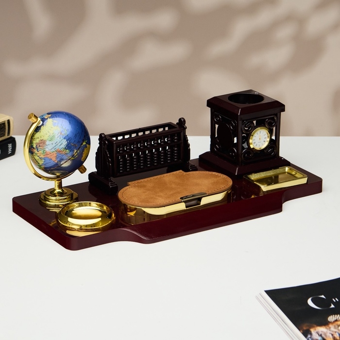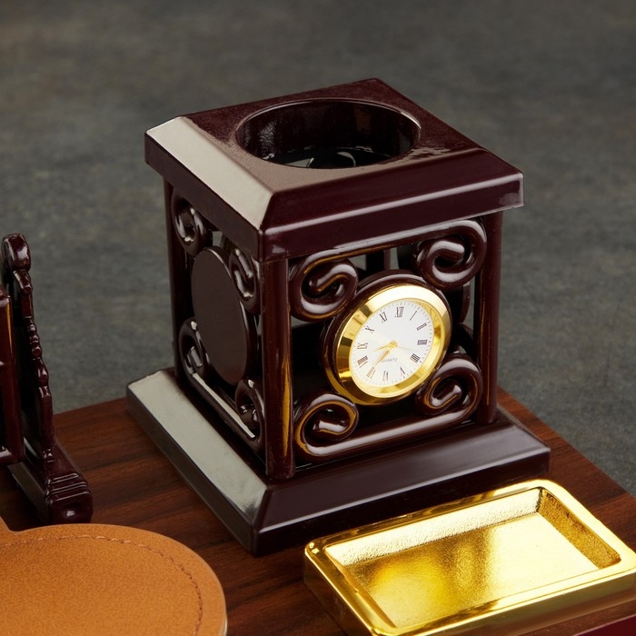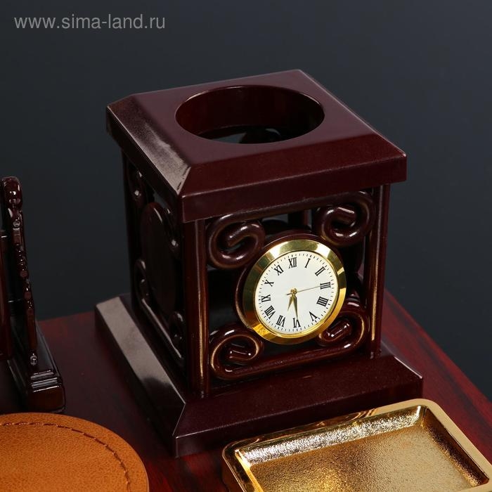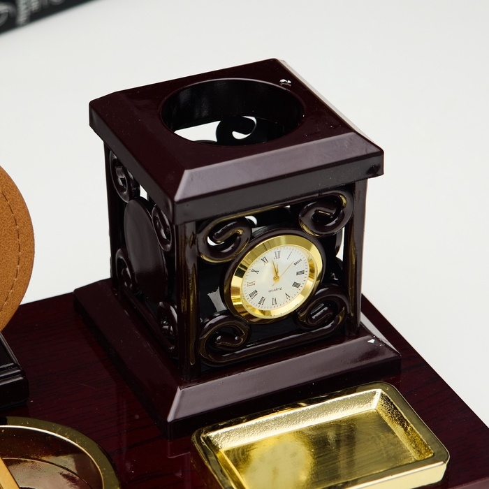 Набор настольный 7в1 с визитницей и часами, 19х24х16,5 см, вишня