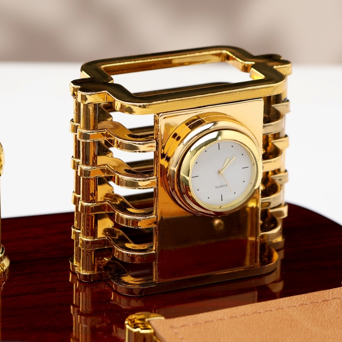 Набор настольный 6в1 с визитницей и часами, красное дерево