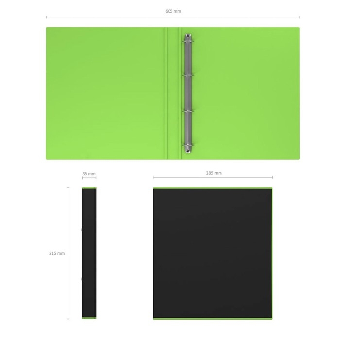 Папка на 4 кольцах А4, ErichKrause Accent, 35 мм, 1750 мкм, черная/салатовая