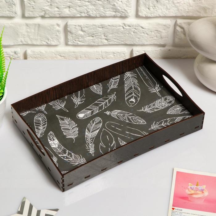 Поднос с ручками "Пёрышки", деревянный, 30х20х4,5см