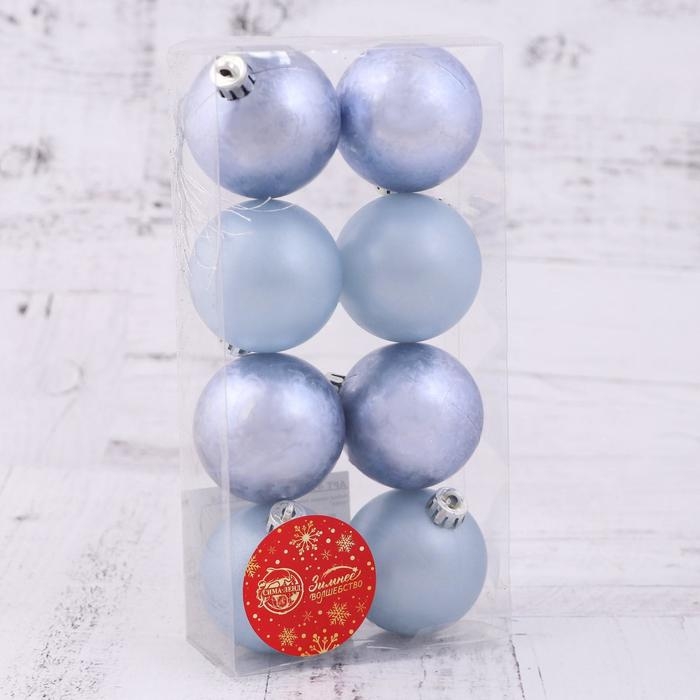 Ёлочные игрушки, шары новогодние , пластик, набор d-5 см, 8 шт "Матовый туман"