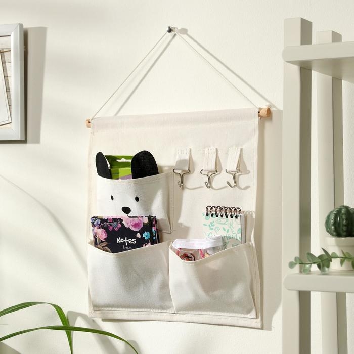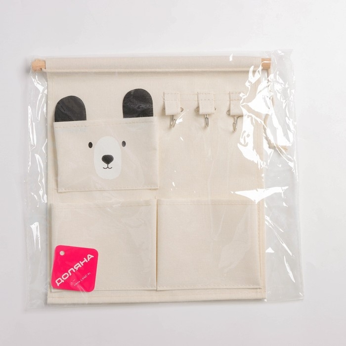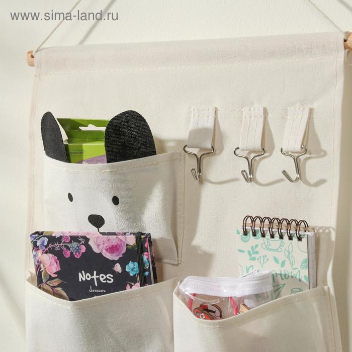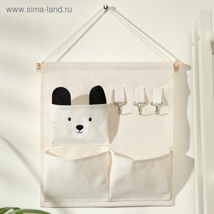 Органайзер подвесной с карманами Доляна «Мишка», 3 отделения, 30×34 см, цвет белый