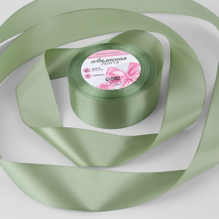 Лента атласная, 40 мм × 23 ± 1 м, цвет фисташковый №65