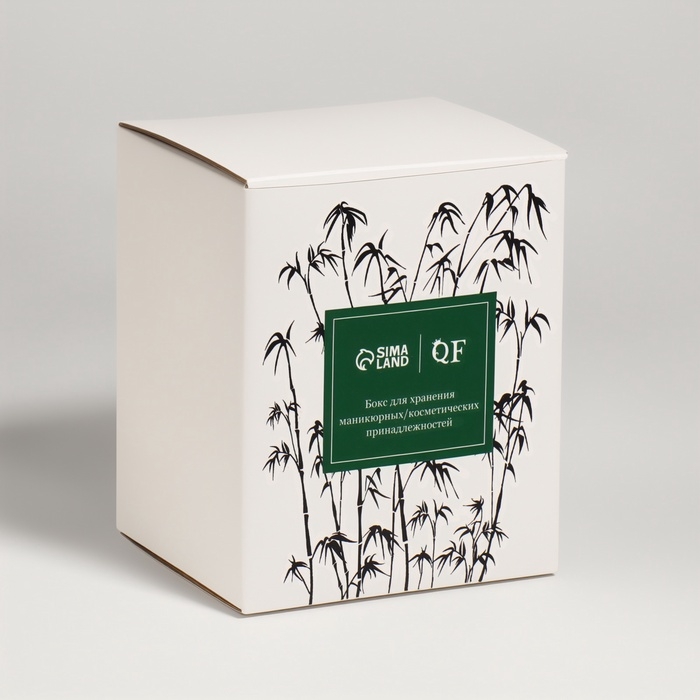 Органайзер для ватных палочек «BAMBOO», с крышкой, 7 × 7 × 9,5 см, в картонной коробке, цвет прозрачный/коричневый