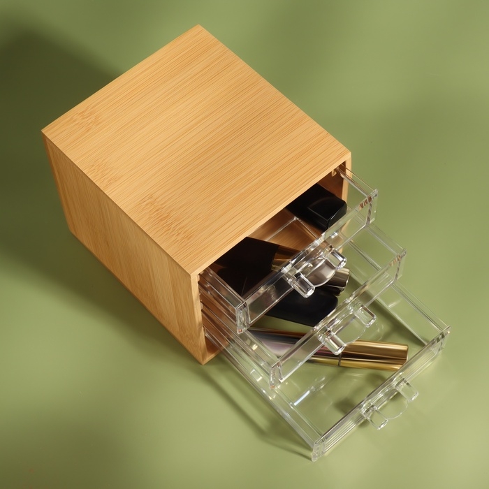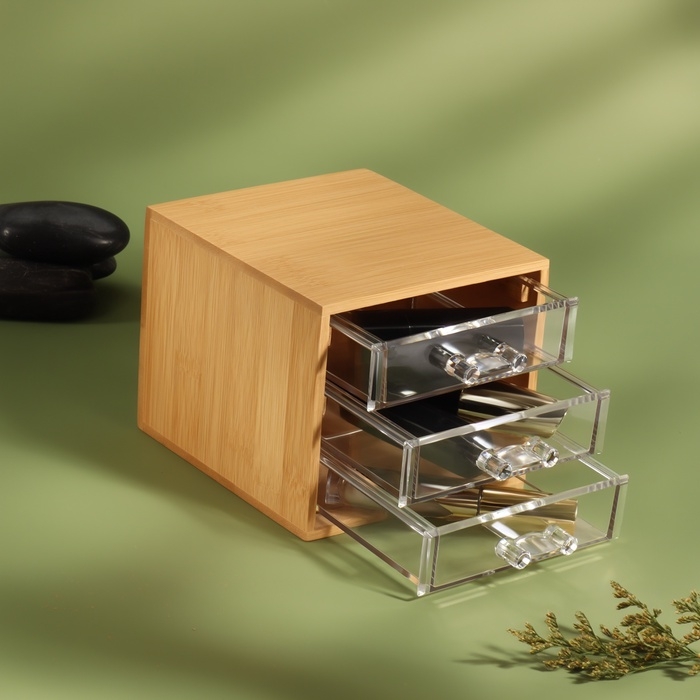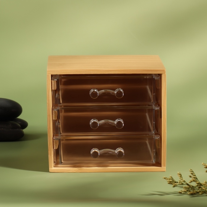 Органайзер для хранения «BAMBOO», 3 ящика, 14×12×11.5 см, в коробке, коричневый