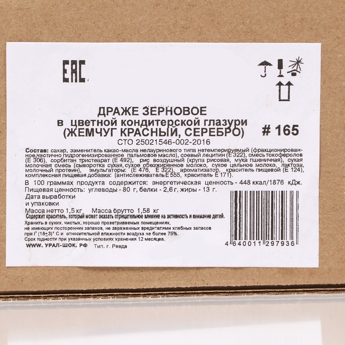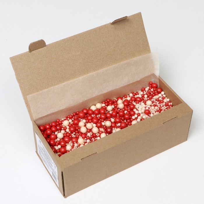 Новогодняя посыпка кондитерская с мягким центром "Жемчуг", красная, серебро, 1,5 кг