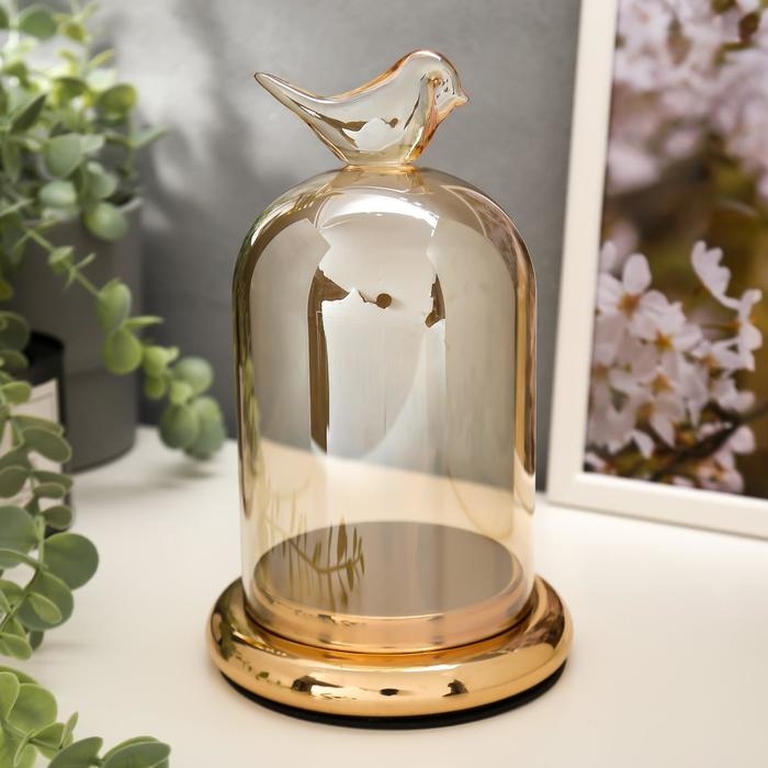 Подсвечник стекло на 1 свечу "Колба с птичкой" золотая карамель 21,5х12,5х12,5 см