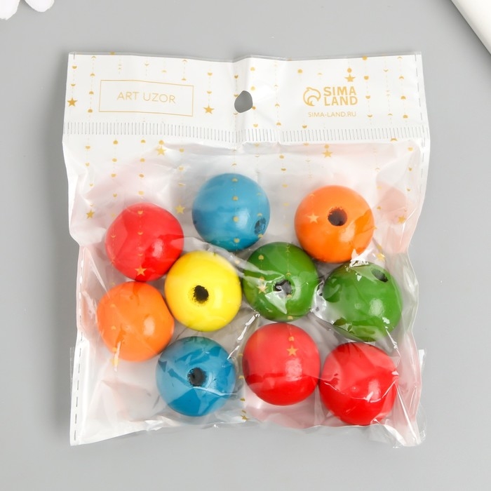 Бусины для творчества дерево "Шарики цветные неон" набор 10 шт d=2,5 см