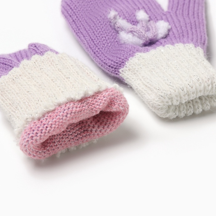 Варежки для девочки, цвет светло-сиреневый, размер 12