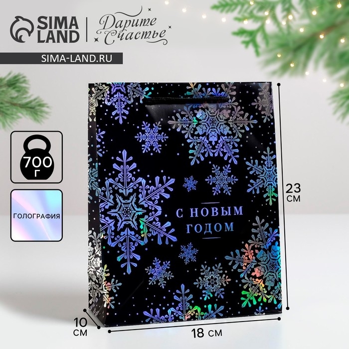 Пакет голография вертикальный «С Новым годом», MS 23 х 18 х 10 см