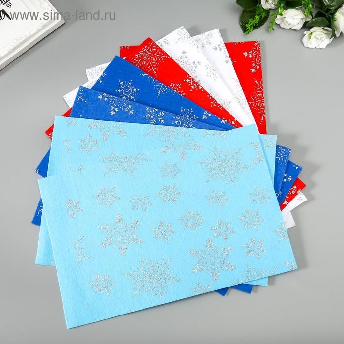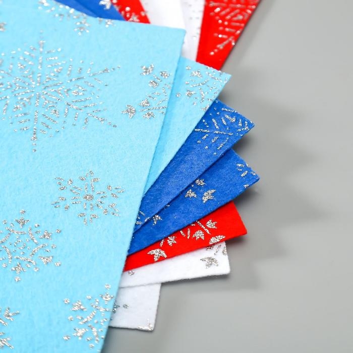 Набор декоративного фетра с глиттером "Снежинки" (8 листов), 20х30 см, 1,4 мм