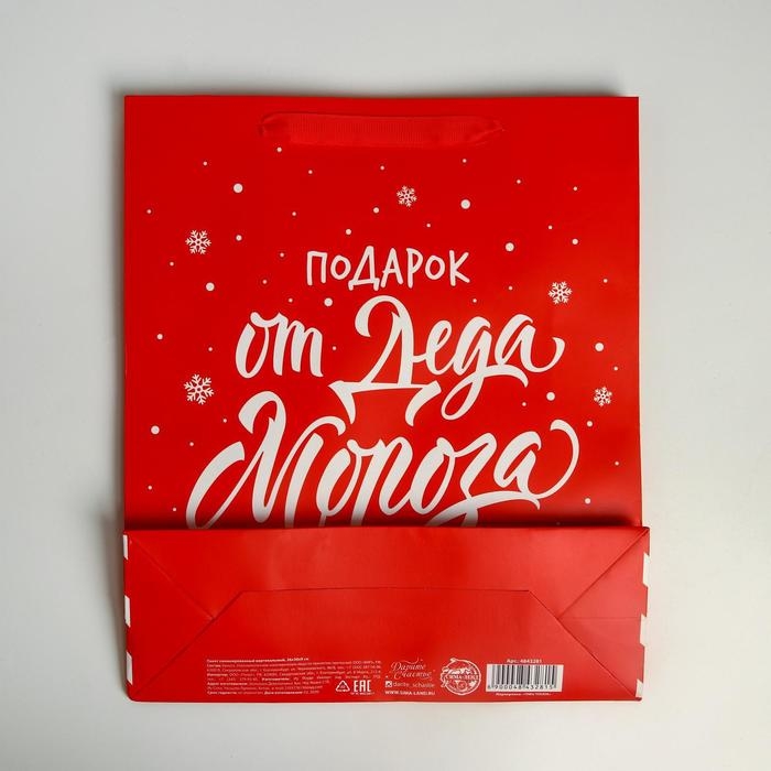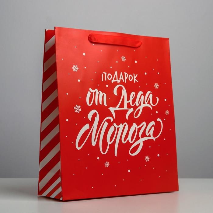 Пакет подарочный новогодний ламинированный «Подарок от Деда Мороза», M 26 х 30 х 9 см