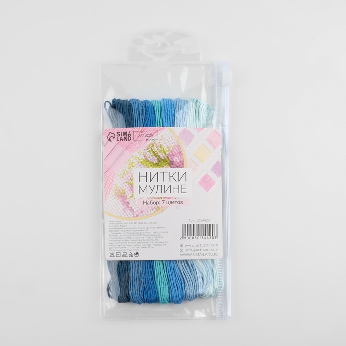 Набор ниток мулине, 8 ± 1 м, 7 шт, цвет синий спектр