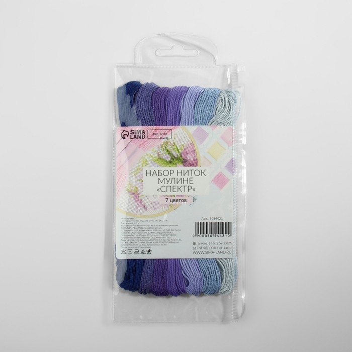 Набор ниток мулине, 8 ± 1 м, 7 шт, цвет синий спектр