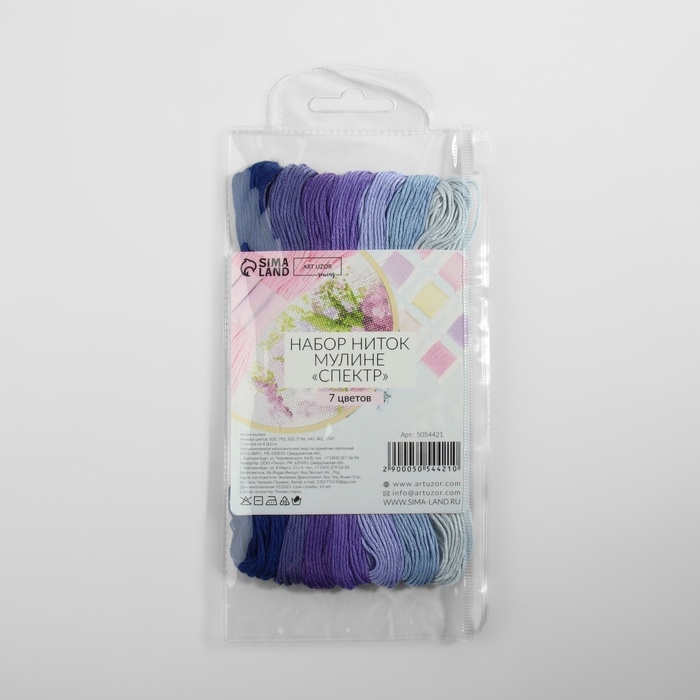 Набор ниток мулине, 8 ± 1 м, 7 шт, цвет фиолетовый спектр