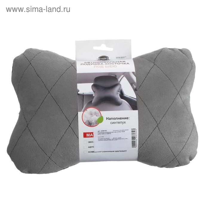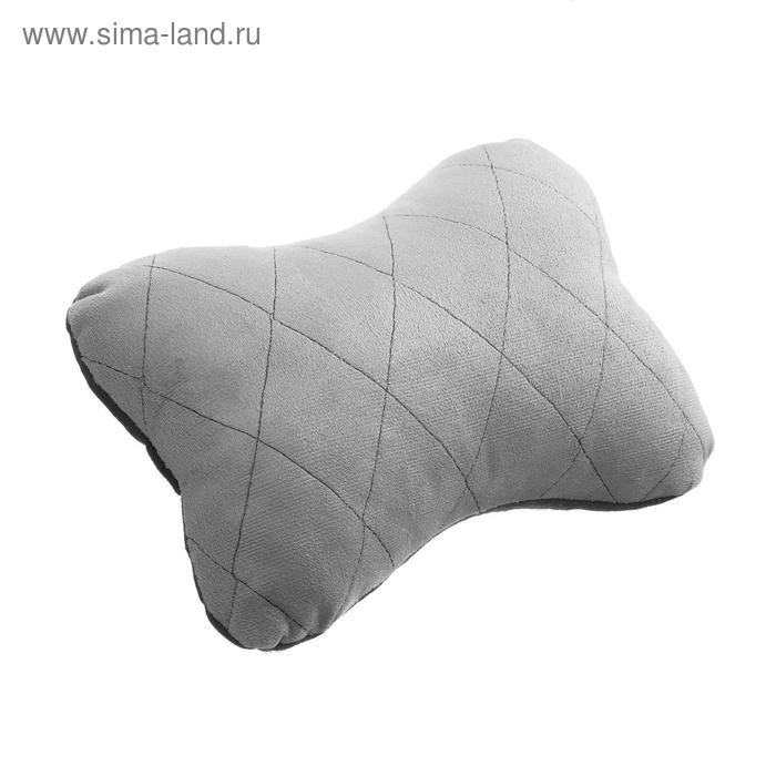 Подушка автомобильная косточка, на подголовник, велюр, серый, ромб, 16 х 24 см