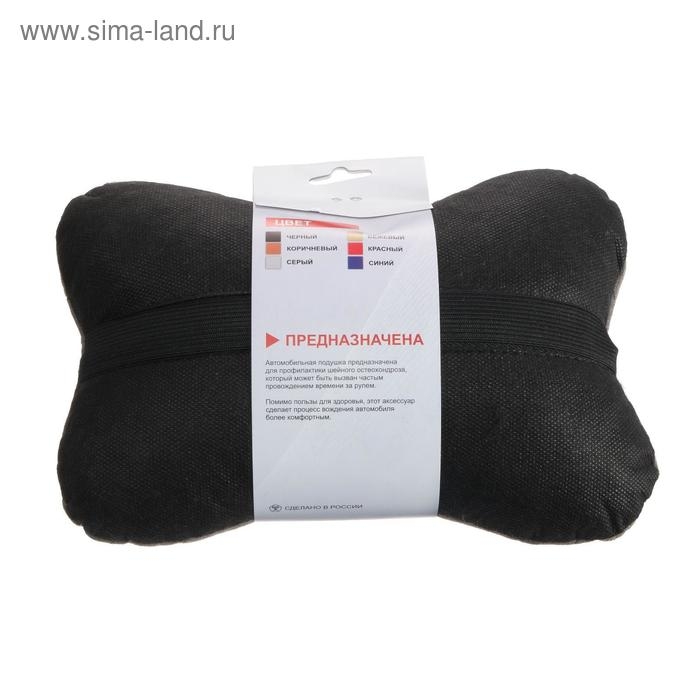 Подушка автомобильная косточка, на подголовник, экокожа, чёрный, 16х24 см
