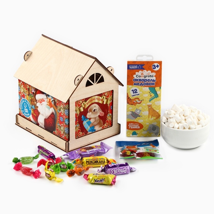 Сладкий детский подарок «Дед Мороз»: конфеты 500 г, краски 12 цветов, кормушка