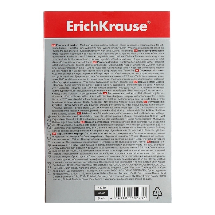 Маркер перманентный 0.5-4.6 мм Erich Krause P-500 чёрный, наконечник скошенный, чернила на спиртовой основе светостойкие, водостойкие без ксилола