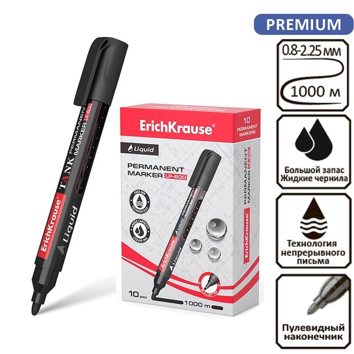 Маркер перманентный ErichKrause Tank LP-600, 0.8-2.25 мм, жидкий, увеличенный запас чернил, чёрный
